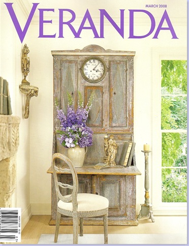 I love when a magazine's cover is beautiful. I'll spy the new issue on the stands and my heart skips a beat while I rush to the checkout counter. If the cover is especially pretty, I won't scan the magazine on the way home. Instead, I'll wait until I can take the article all in, with no distractions. The new Veranda magazine has such a cover! The story centers around a gorgeous, remodeled Dallas home owned by a young Texan couple, both of whom have ties to the design world. The Newsoms started and own the wildly successful Wisteria catalogue, a favorite source for designers and design lovers everywhere. The wife, Shannon, is the daughter of one of Houston's great interior designers, Jane Moore - who also owns the shop Jane Moore, Ltd. which specializes in Swedish and French antiques. And, as if that isn't enough design pedigree for one couple -- Andrew, the husband, is the son of Veranda's founder and editor Lisa Newsom (a fact which was news to me.) No wonder Wisteria is as fabulous as it is!! With genes like these, how could Shannon and Andrew go wrong?
